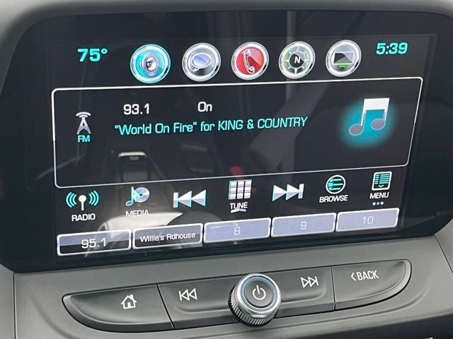 - Audio system, Chevrolet MyLink Radio with 8" diagonal color touch-screen, AM/FM stereo with seek-and-scan and digital clock includes Bluetooth® streaming audio for music and select phones; voice-activated technology for radio and phone; featuring Android Auto and Apple CarPlay capability for compatible phone and Shop with the ability to browse, select and install apps to your vehicle. Apps include Pandora, iHeartRadio, The Weather Channel and more