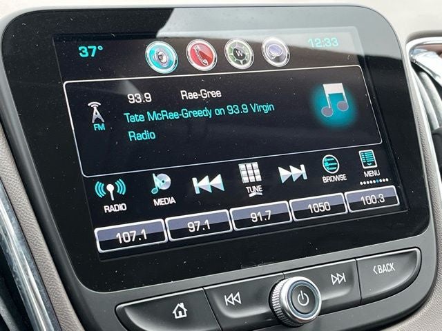 - Audio system, Chevrolet MyLink Radio with Navigation and 8" diagonal color touch-screen, AM/FM stereo with seek-and-scan and digital clock, includes Bluetooth® streaming audio for music and select phones; voice-activated technology for radio and phone; featuring Apple CarPlay capability for compatible phone