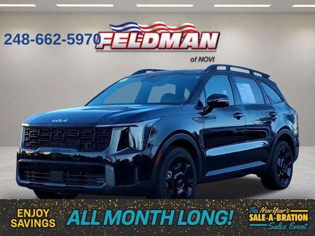 2024 Kia Sorento 8-Speed DCT ********** VEHICLE LOCATED AT FELDMAN CHEVY OF NOVI *** CALL 248-662-5970 ***** FAST FRIENDLY - HASSLE-FREE - THAT'S HOW WE DO CAR BUYING !!!! ******************************** ***********CARFAX CERTIFIED ***CERTIFIED INSPECTION ******** ***CERTIFIED!***, ***CARFAX ONE OWNER***, Sorento X-Line SX Prestige, 4D Sport Utility, 2.5L I4 DGI Turbocharged DOHC 16V LEV3-SULEV30 281hp, 8-Speed DCT, AWD, Ebony Black, Apple CarPlay & Android Auto, Auto High-beam Headlights, Auto-dimming Rear-View mirror, Automatic temperature control, Electronic Stability Control, Exterior Parking Camera Rear, Fully automatic headlights, Garage door transmitter: HomeLink, Heated & Ventilated Front Bucket Seats, Heated door mirrors, Heated rear seats, Heated steering wheel, Leather steering wheel, Memory seat, Navigation System, Outside temperature display, Perforated Genuine Leather Seat Trim, Power Liftgate, Power moonroof, Radio: AM/FM Bose Premium Audio System, Rear window defroster, Sage Leather Package, Smart Key w/ Push Button and Remote Start, Steering wheel mounted audio controls, Turn signal indicator mirrors, Variably intermittent wipers, Wheels: 8.5J x 20 Gloss Black X-Line Alloy. CARFAX One-Owner. Clean CARFAX.